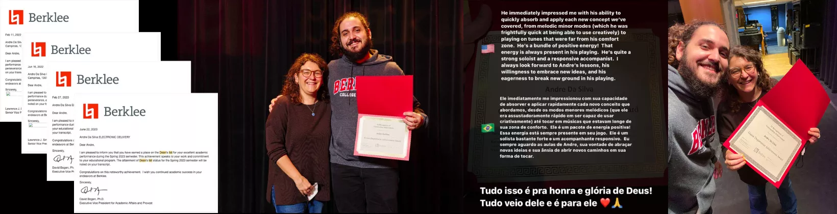Minha experiencia na Berklee foi extraordinária. Tive a honra de estudar e tocar com mestres como: John Patitucci, Danilo Perez, Tim Miller, Tomo Fujita, Victor Wooten, Sheryl Bailey...