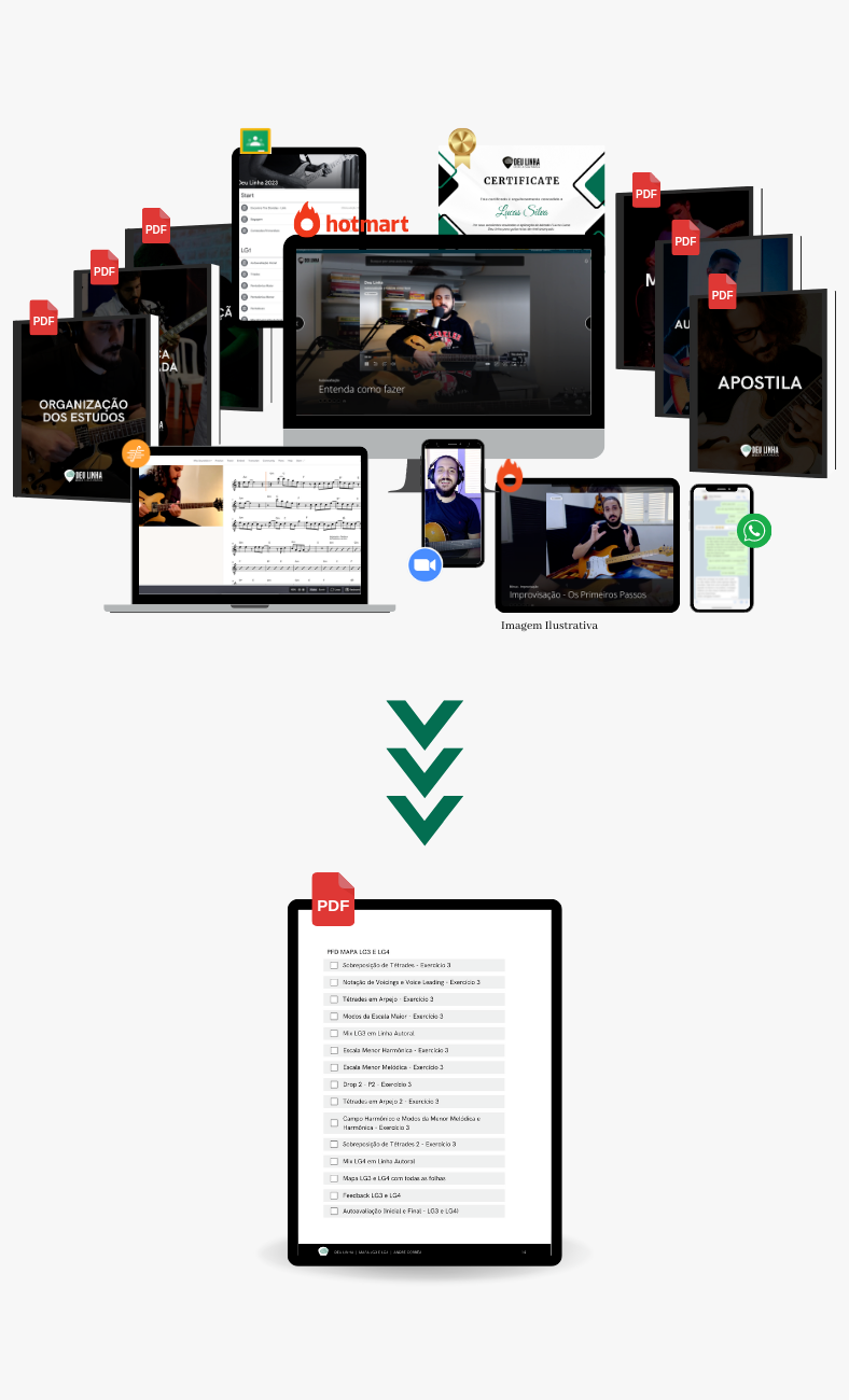 Com o Deu Linha você vai aprender a criar sua própria linha de guitarra e fortalecer sua identidade musical, independente do estilo. E para ter certeza que você entendeu como trazer esse conteúdo para a prática no seu som, liberei aulas bônus em cada nível LG com um repertório demonstrativo! Vou te mostrar exemplos em músicas de vários estilos, que vai te ajudar a encontrar caminhos diferentes na prática e agregar repertório em sua setlist.